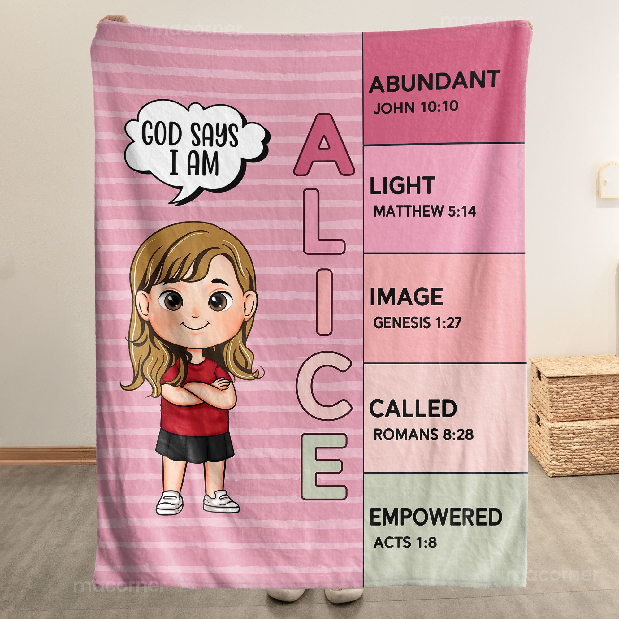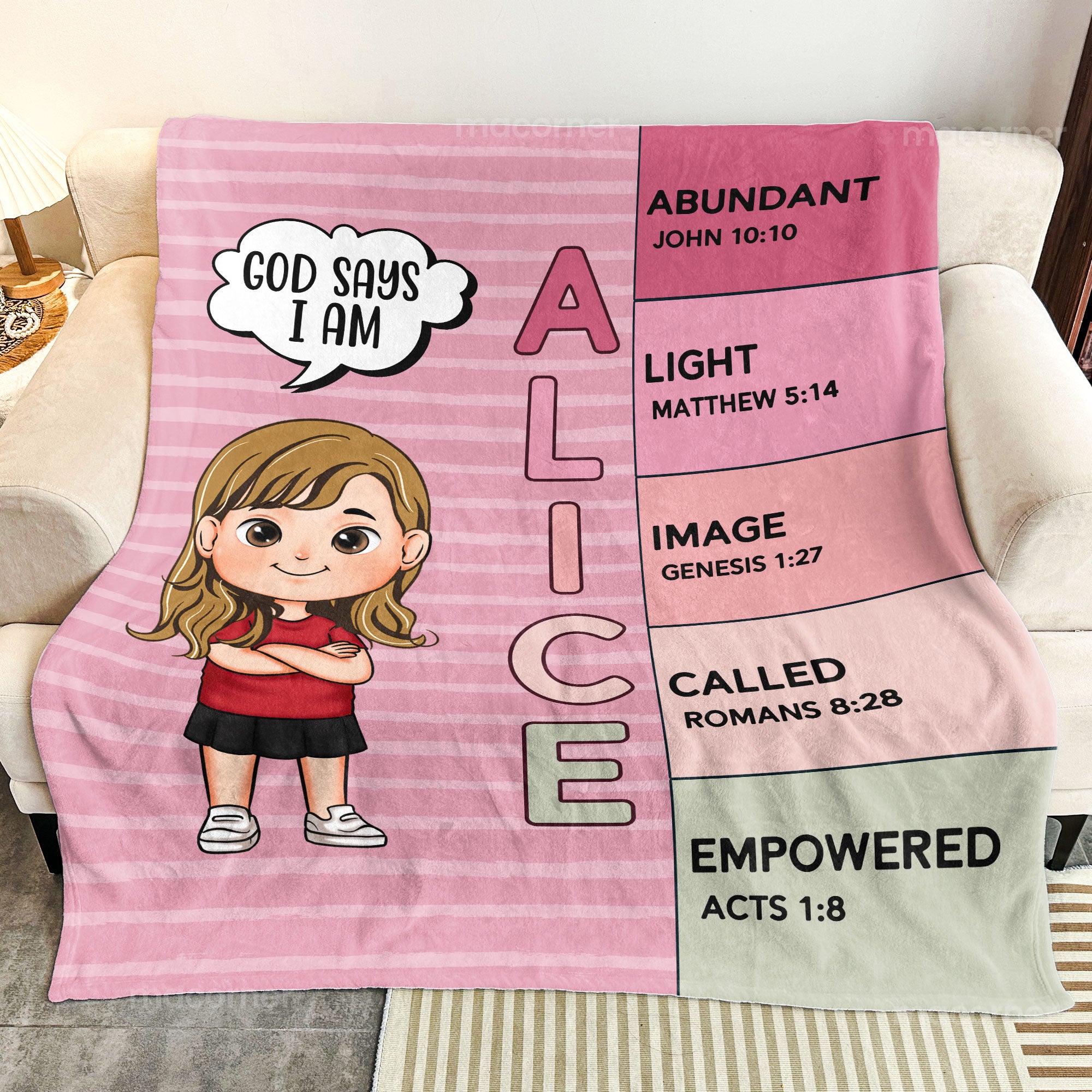 Looking for the perfect gift for a kid? Our “God Says I Am” blanket is a heartfelt choice that combines comfort with a meaningful message. This cozy blanket features inspiring affirmations based on biblical principles, helping children understand their identity and purpose. Each blanket can be personalized with the child’s name and a special letter meaning from the Bible, making it not just a warm accessory but also a cherished keepsake.