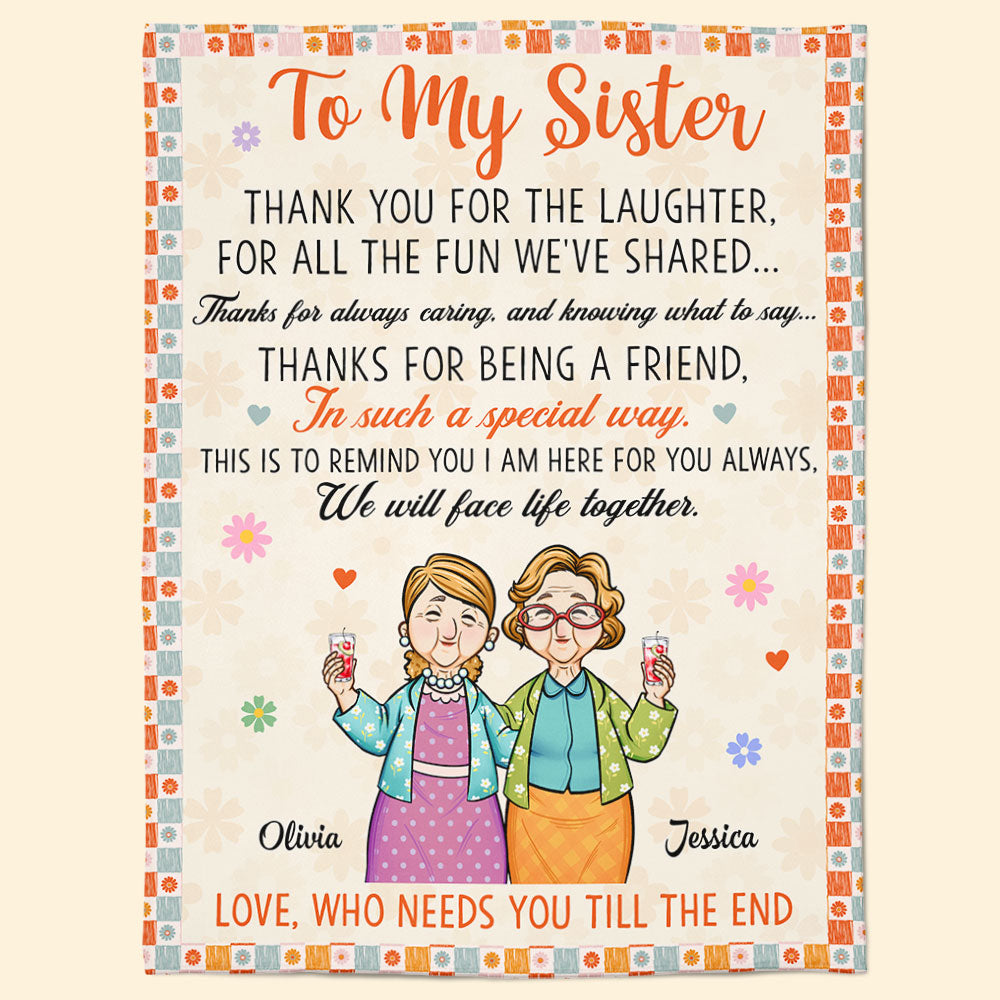 Introducing our Personalized Blanket, the perfect cozy companion to celebrate the bond you share with your sisters. This beautiful blanket can be customized with characters that resemble you and your sisters, making it a truly unique and heartfelt gift. Perfect for family gatherings, it wraps you in warmth and love, reminding you of the special connection you share. Whether it’s for Christmas, a birthday, or just to show your appreciation, this lovely gift will bring smiles and comfort. Ideal for snuggling up on chilly evenings, our Personalized Blanket is a touching way to express your love and create cherished memories with your sisters. Give the gift of warmth, love, and togetherness with this delightful keepsake.