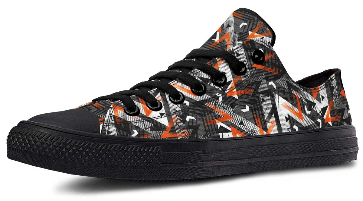 Transform your daily wardrobe with the Orange Polygon Pattern Black Low-Top Sneakers. These sneakers feature a striking geometric design with vibrant orange accents set against a professional black canvas. Engineered for both comfort and longevity, they utilize high-quality materials and a cushioned insole, making them ideal for all-day wear. Whether you are navigating city streets or relaxing with friends, these low-top sneakers blend modern artistic aesthetics with functional athletic performance.
