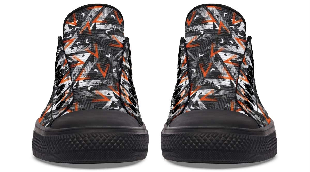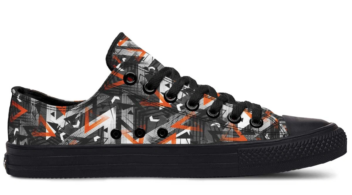 Orange Polygon Pattern Black Low-Top Sneakers – Geometric Streetwear