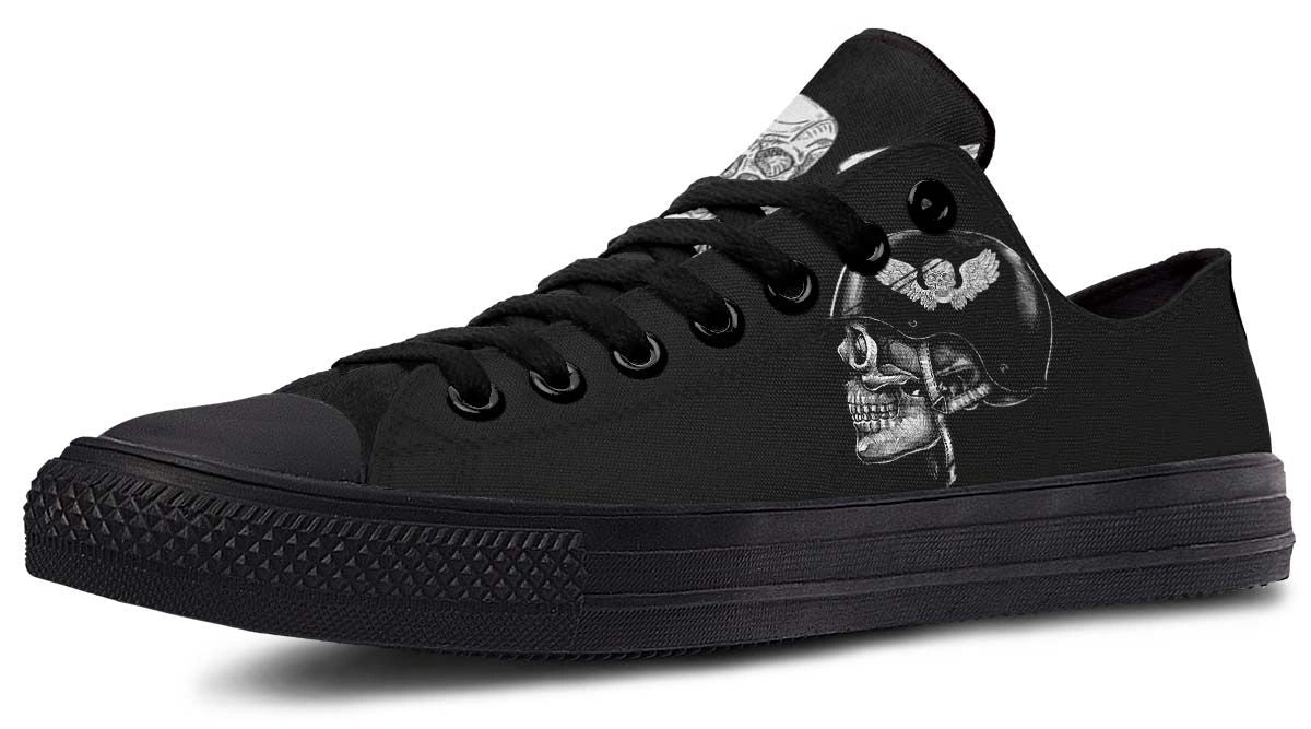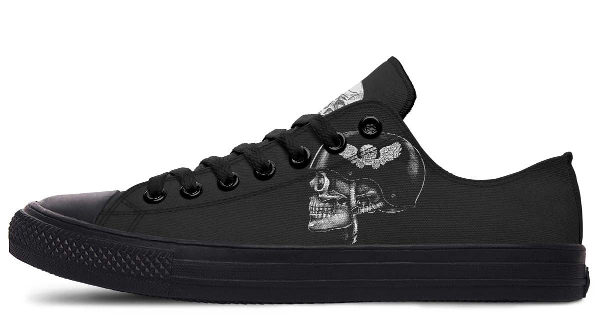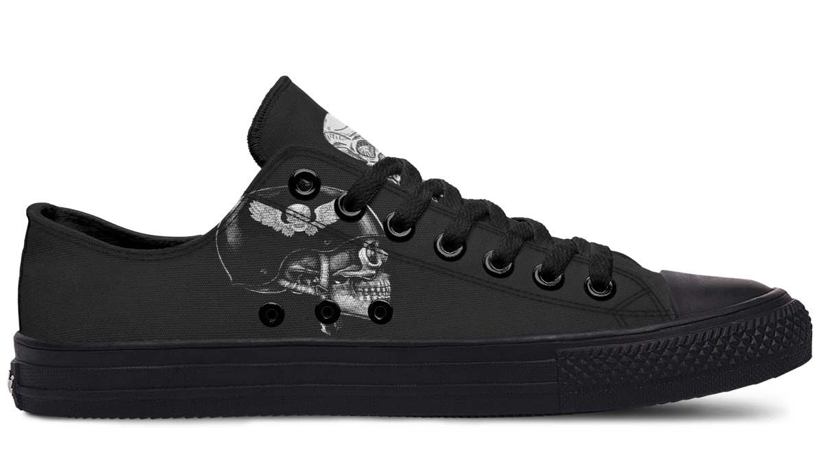 Skull Helmet Black Lowtop Sneaker – Edgy Graphic Streetwear